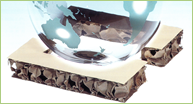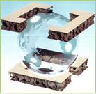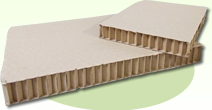 ハニカム構造(ダイスコア)を芯として、両面に段ボール原紙を貼り合わせた紙ボード製品