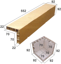 ダイスボードを1/2に圧縮、弾力性作用を有する様に屈曲形成した新しい緩衝材です。(特許出願公開No.206044)